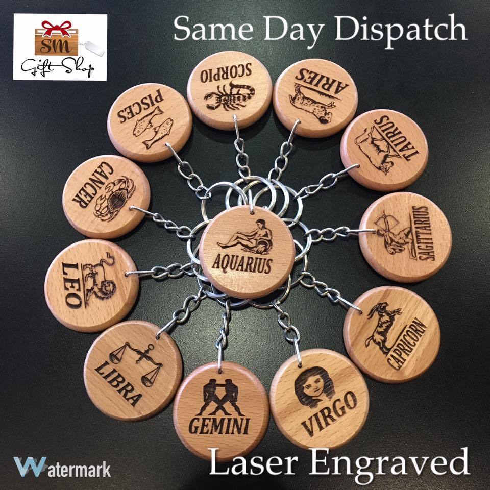 Zodiac Horoscope Wooden Keyring Keychain Ebay
