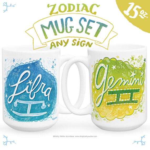 Horoscope Mug Set Zodiac Sign Coffee Mugs Couples Gift Etsy